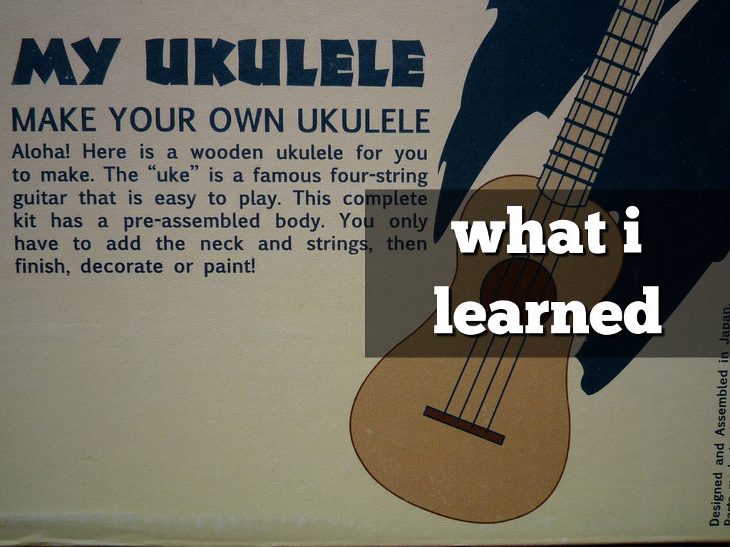 Tuning: The first thing to learn about the Uke is how to properly tune the thing. An out of tune Uke is not a pretty thing.