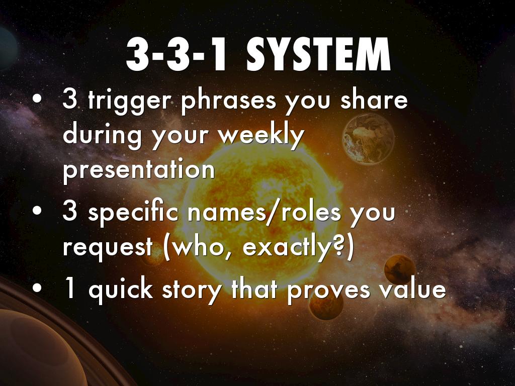 One clear “ideal client” picture • Simple weekly rhythm (3-3-1) • 60-second GAINS micro-swap