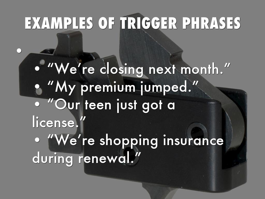 • “We’re closing next month.” • “My premium jumped.” • “Our teen just got a license.” • “We’re shopping insurance during renewal.”