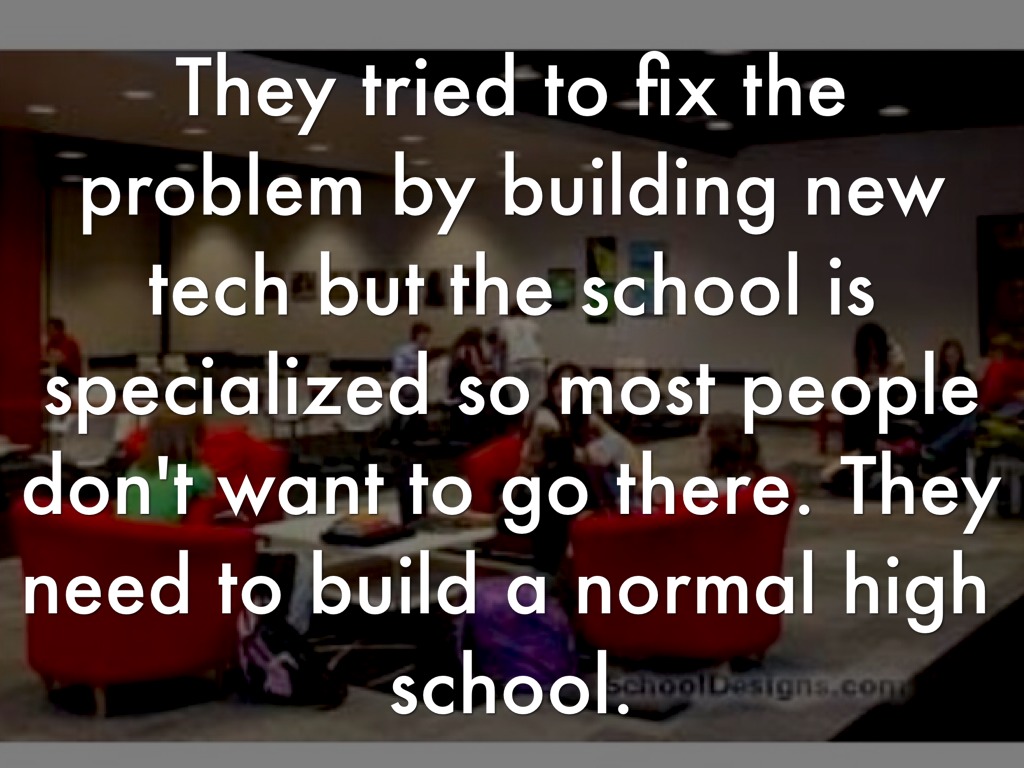 They tried to fix the problem by building new tech but the school is specialized so most people don't want to go there. They need to build a normal high school.
