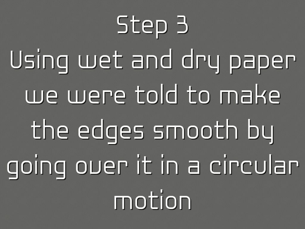 Using wet and dry paper we were told to make the edges smooth by going over it in a circular motion