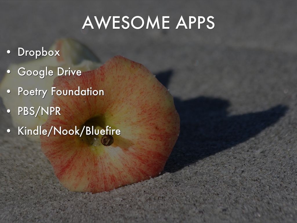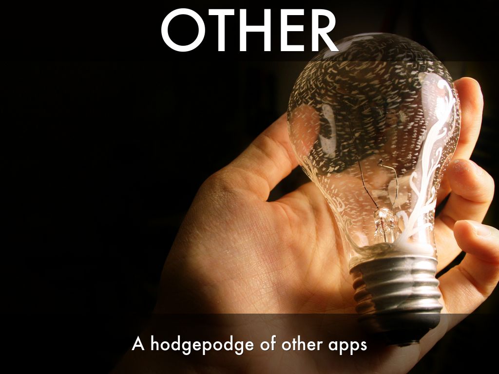 So this presentation is NOT "check out this cool app!" - there are many of those online. This presentation IS on "check out the ways you can use this device to accomplish your goals/tasks.