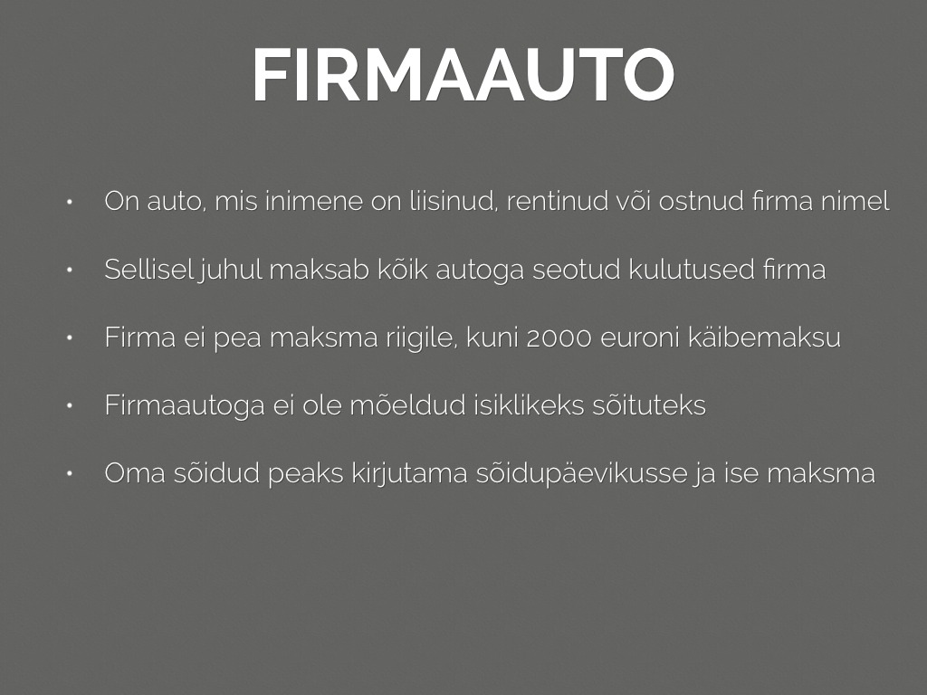 Firmaautoga ei ole mõeldud isiklikeks sõituteks