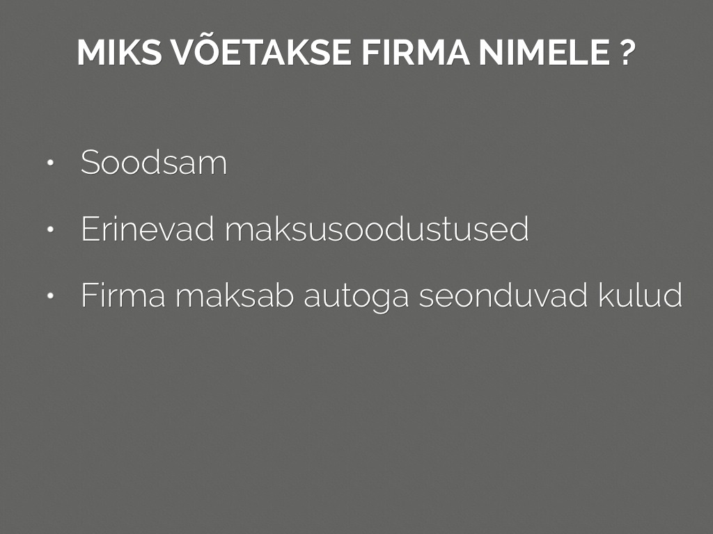 MIKS VÕETAKSE FIRMA NIMELE ?