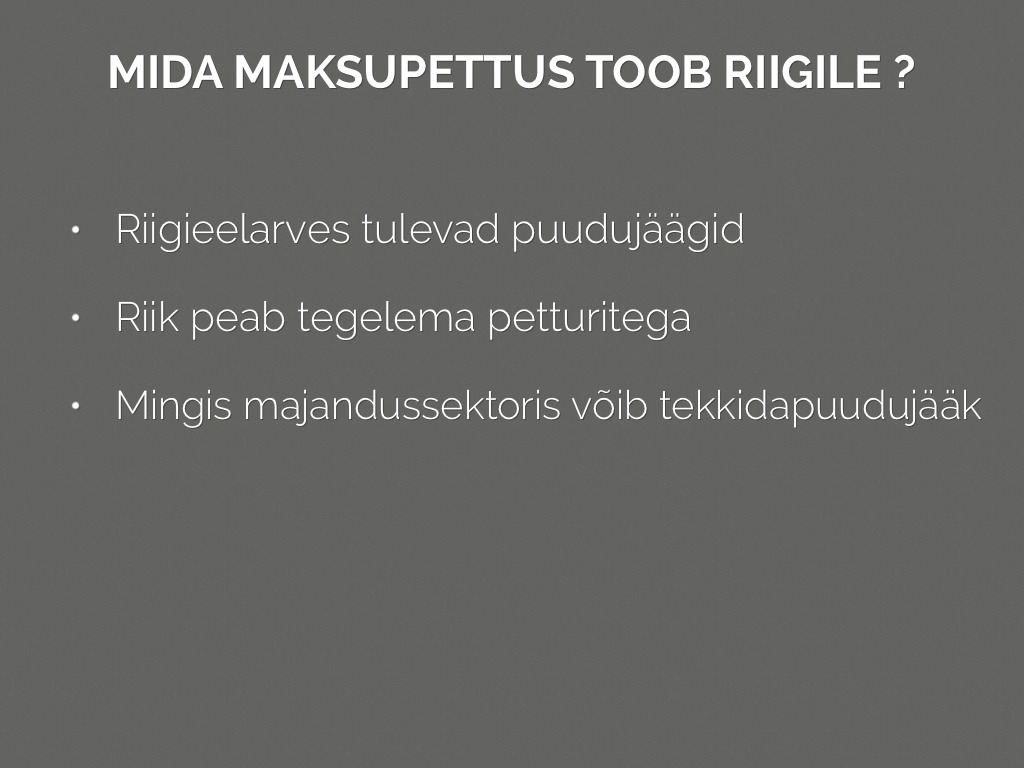 MIDA MAKSUPETTUS TOOB RIIGILE ?