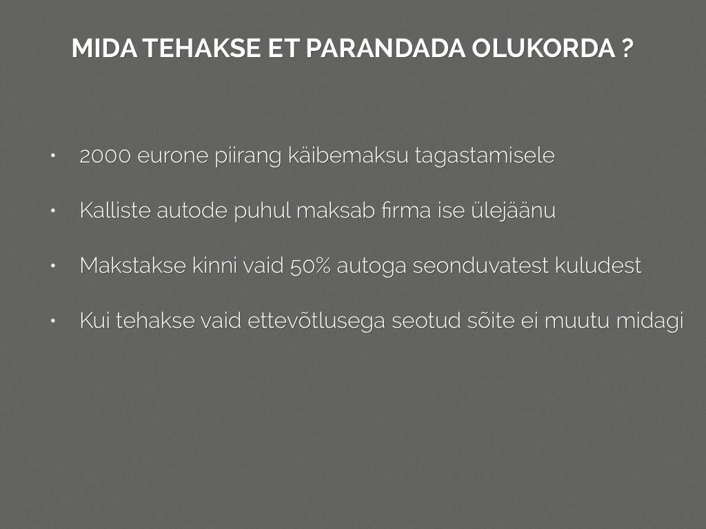 MIDA TEHAKSE ET PARANDADA OLUKORDA ?