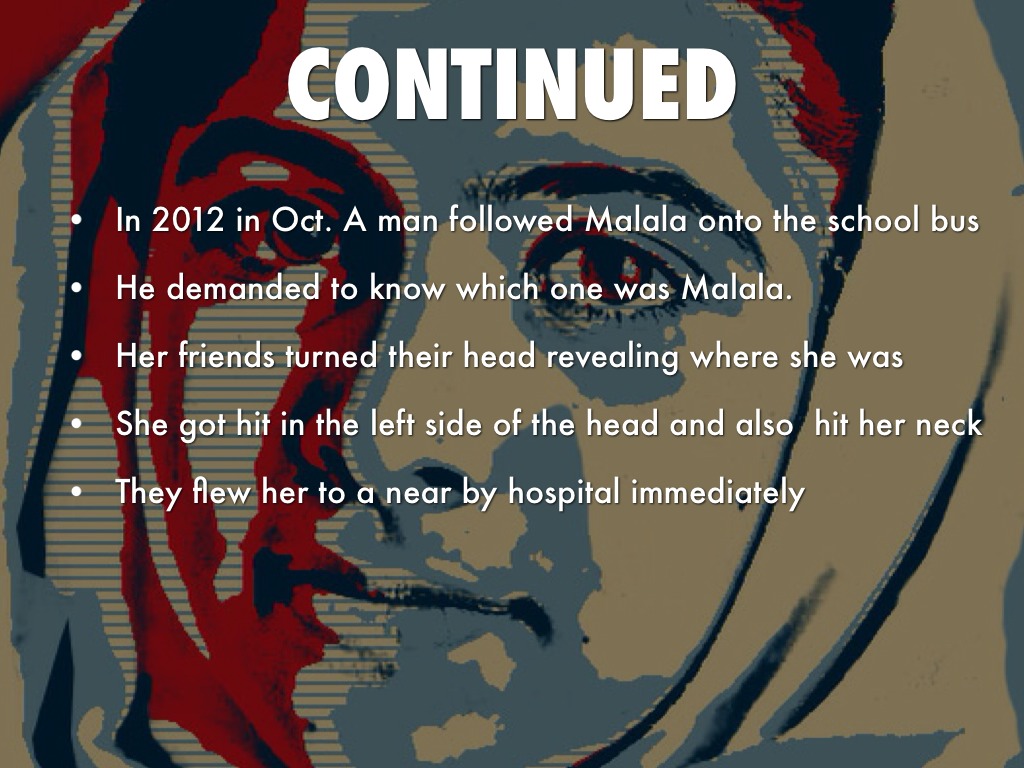 In 2012 in Oct. A man followed Malala onto the school bus