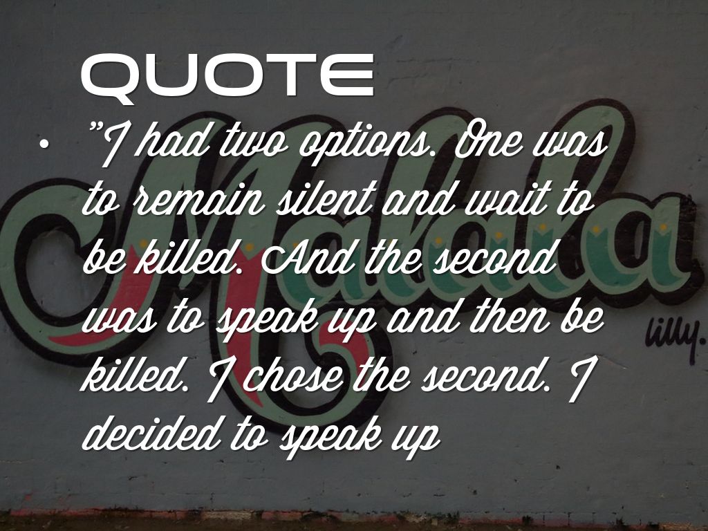 "I had two options. One was to remain silent and wait to be killed. And the second was to speak up and then be killed. I chose the second. I decided to speak up