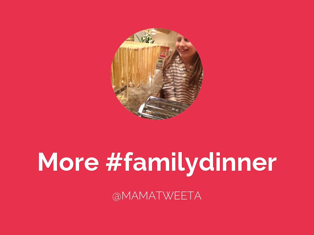 You'll also often see me tweeting what I'm cooking for #famlydinner. Eating well, and eating together, is important to me, even when we're on the most hectic work/soccer/carpool/family schedule. I really try to make time for it.
