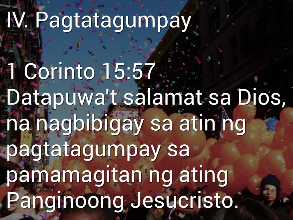 Filipos 3:20 Sa kabilang dako, ang langit ang tunay nating bayan mula roo'y hinihintay nating may pananabik ang Panginoong JesuCristo ang ating tagapagligtas