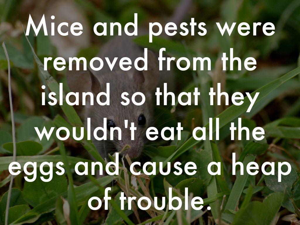 Mice and pests were removed from the island so that they wouldn't eat all the eggs and cause a heap of trouble.
