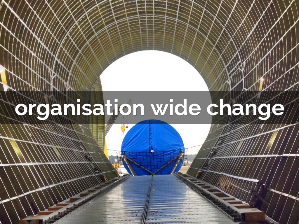 Organization-wide change could be a major restructuring, collaboration or “rightsizing.” organizations usually undergo organization-wide change to evolve to a different level in their life cycle that is, changing from a highly reactive, entrepreneurial organization to an organization that has a more stable and planned development