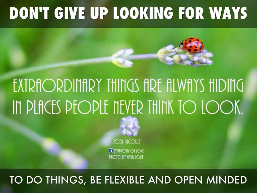 TO DO THINGS, BE FLEXIBLE AND OPEN MINDED