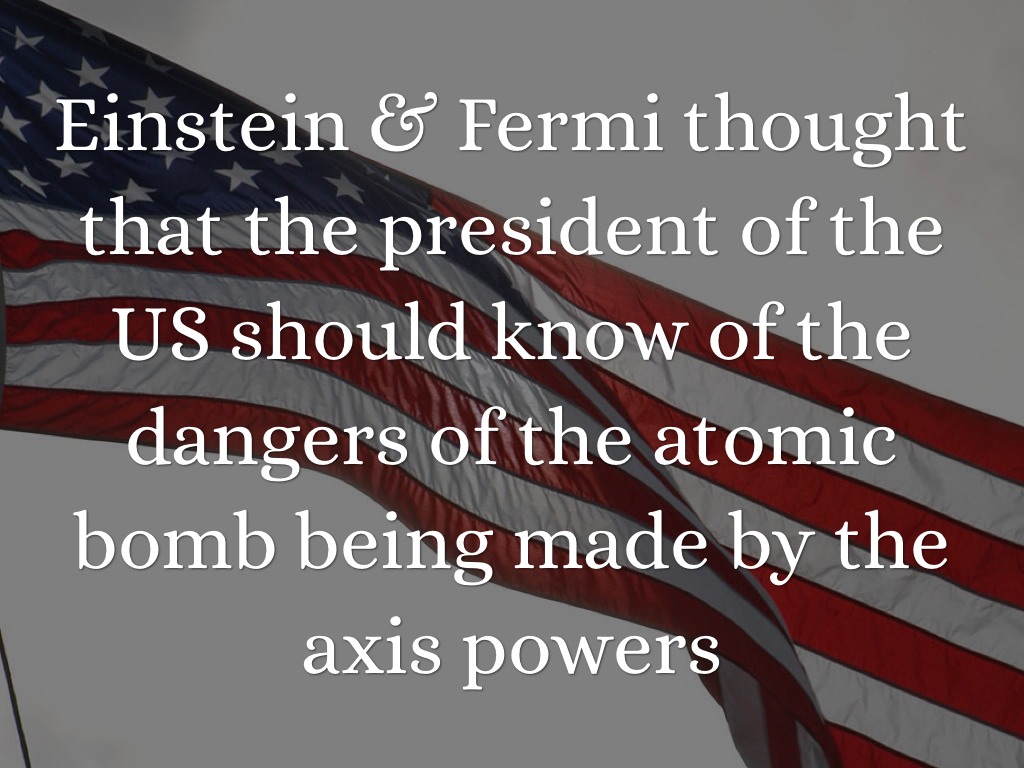 Einstein & Fermi thought that the president of the US should know of the dangers of the atomic bomb being made by the axis powers