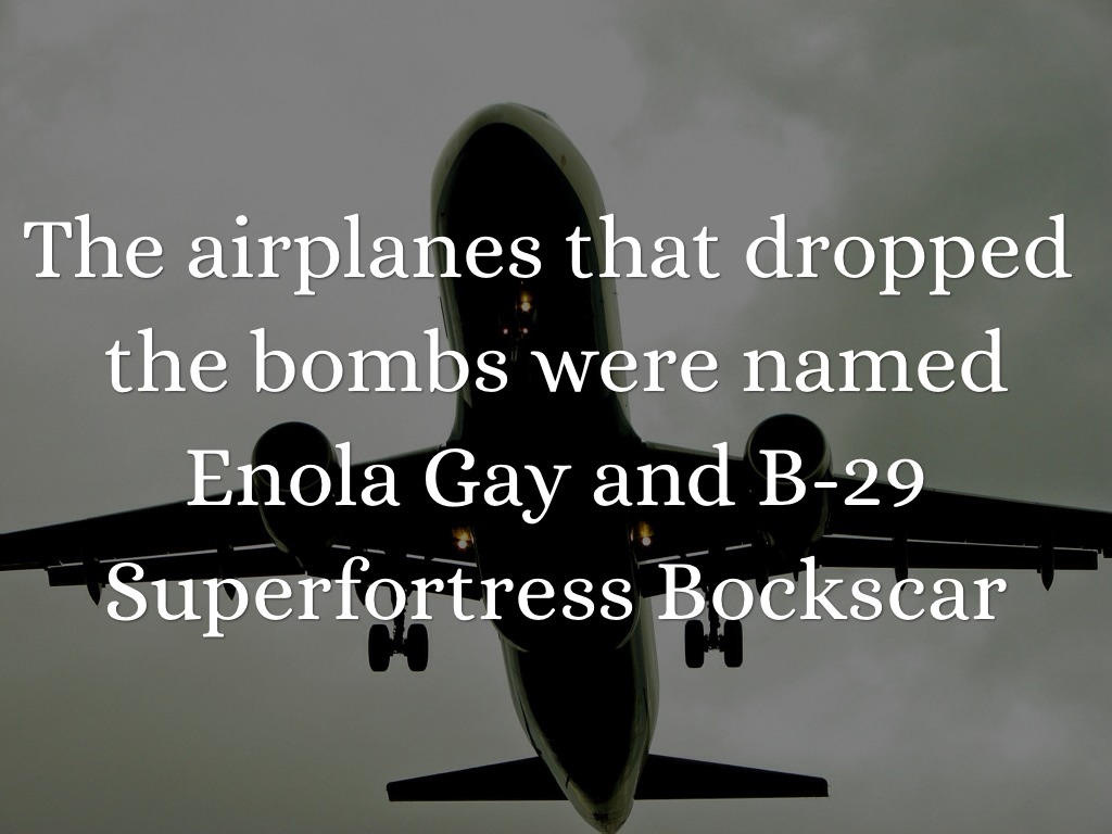 The airplanes that dropped the bombs were named Enola Gay and B-29