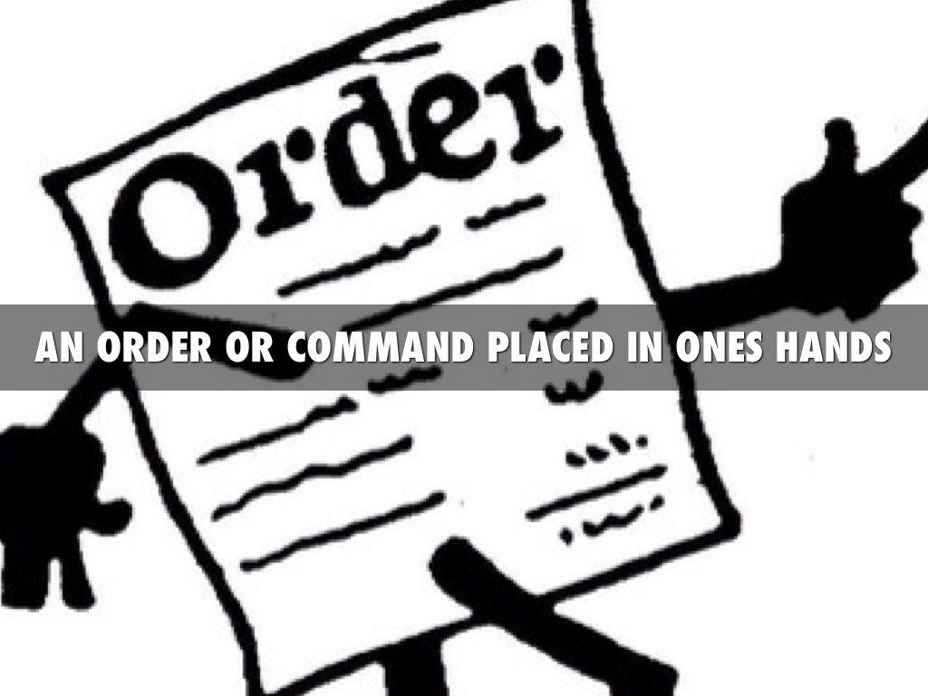 AN ORDER OR COMMAND PLACED IN ONES HANDS