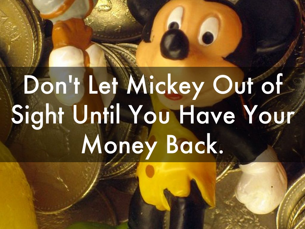 Don't Let Mickey Out of Sight Until You Have Your Money Back.
