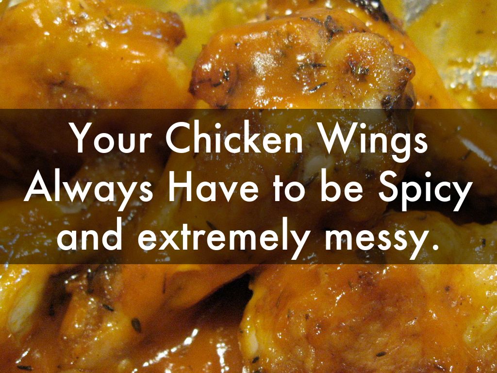 Your Chicken Wings Always Have to be Spicy and extremely messy.