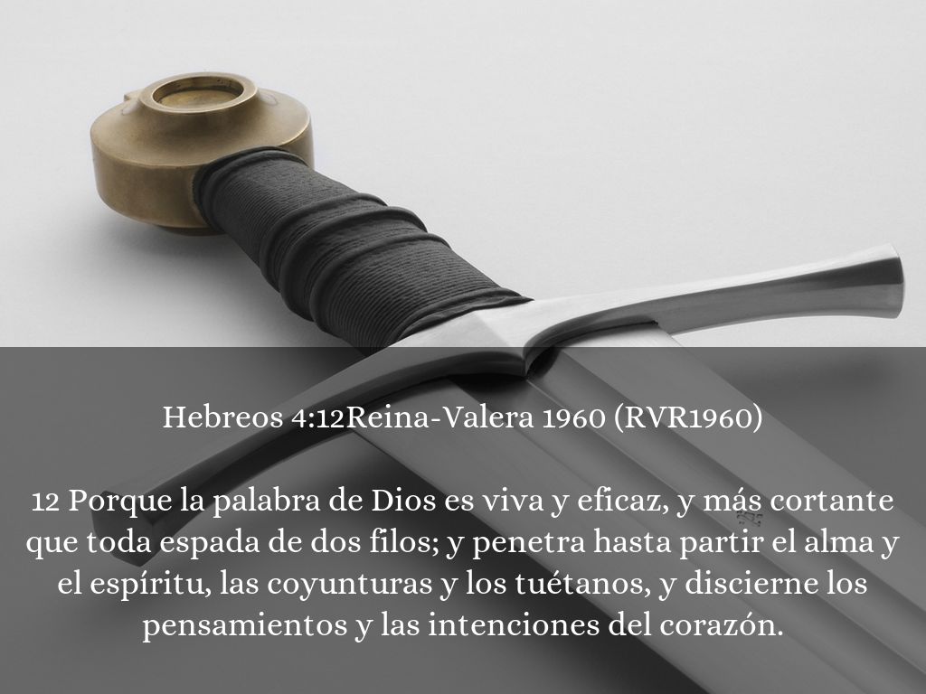 12 Porque la palabra de Dios es viva y eficaz, y más cortante que toda espada de dos filos; y penetra hasta partir el alma y el espíritu, las coyunturas y los tuétanos, y discierne los pensamientos y las intenciones del corazón.