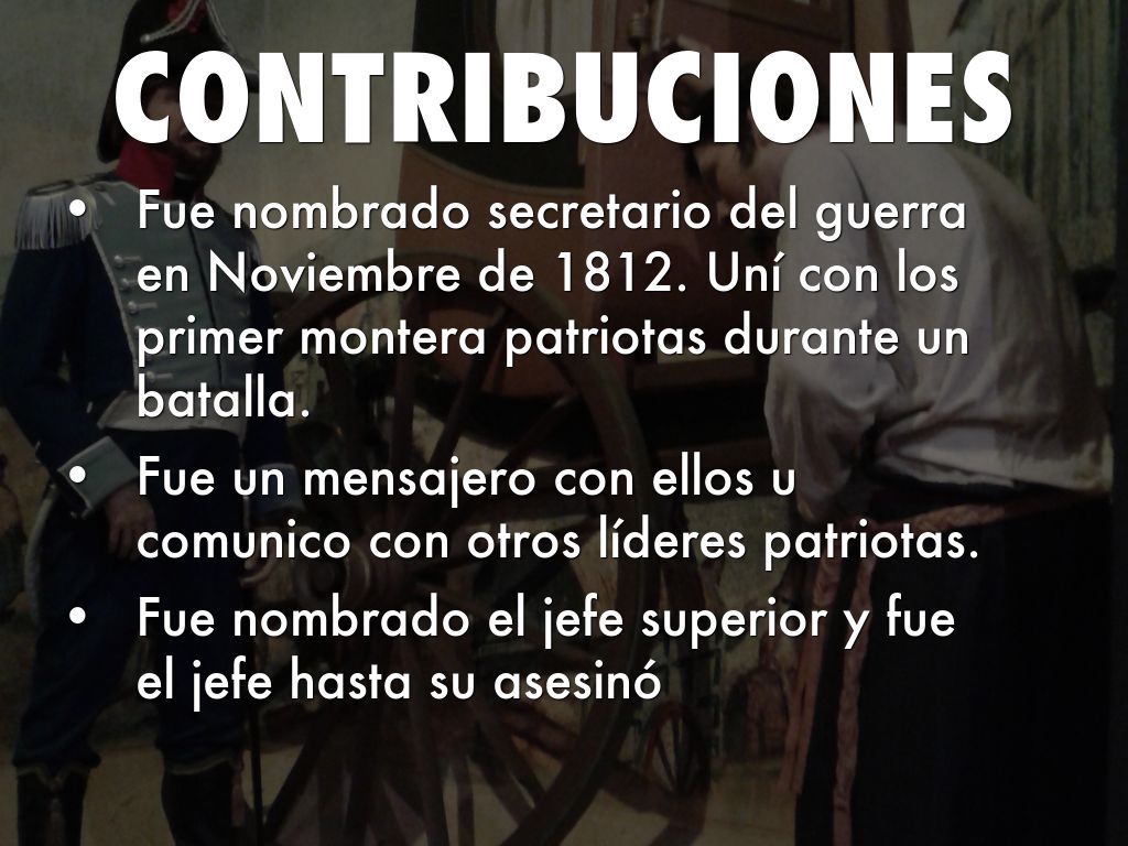 • Fue nombrado secretario del guerra en Noviembre de 1812. Uní con los primer montera patriotas durante un batalla.