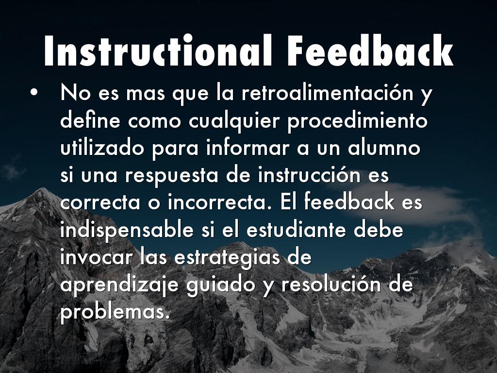 No es mas que la retroalimentación y define como cualquier procedimiento utilizado para informar a un alumno si una respuesta de instrucción es correcta o incorrecta. El feedback es indispensable si el estudiante debe invocar las estrategias de aprendizaje guiado y resolución de problemas.