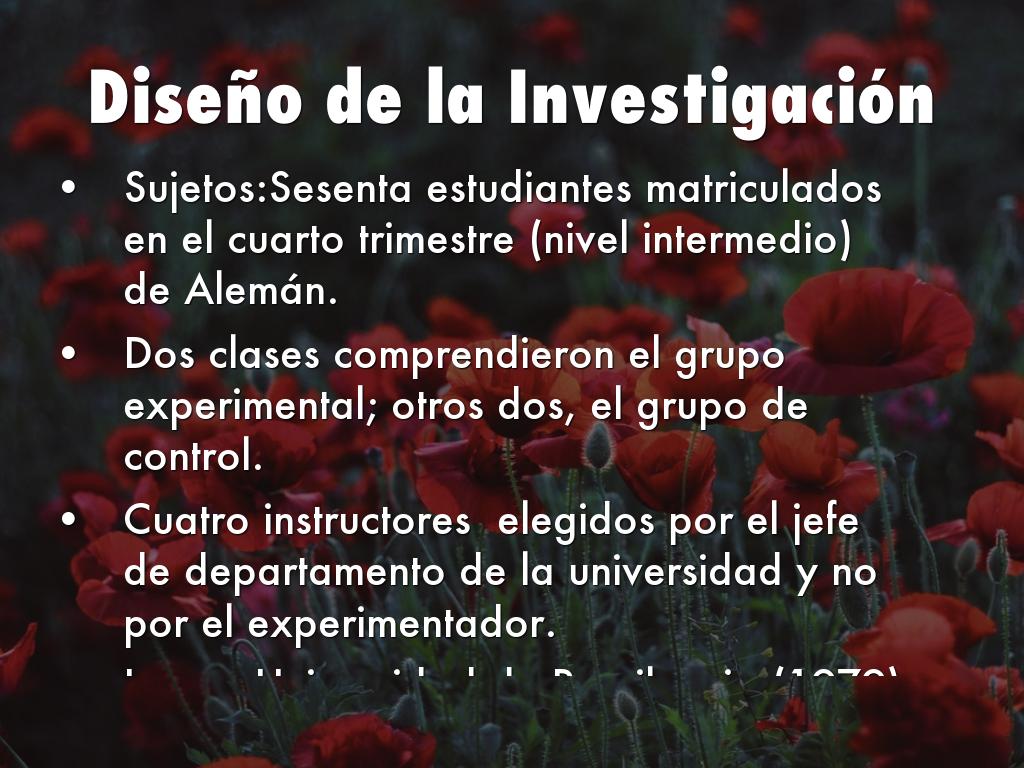 El propósito principal de este experimento fue probar la eficacia de estas técnicas en la corrección gramatical y ortográfica combinada de las composiciones escritas por estudiantes universitarios de nivel intermedio.