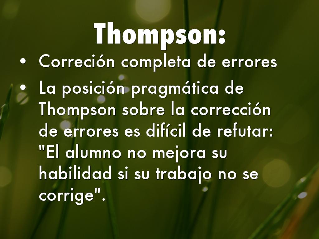 La posición pragmática de Thompson sobre la corrección de errores es difícil de refutar: "El alumno no mejora su habilidad si su trabajo no se corrige".