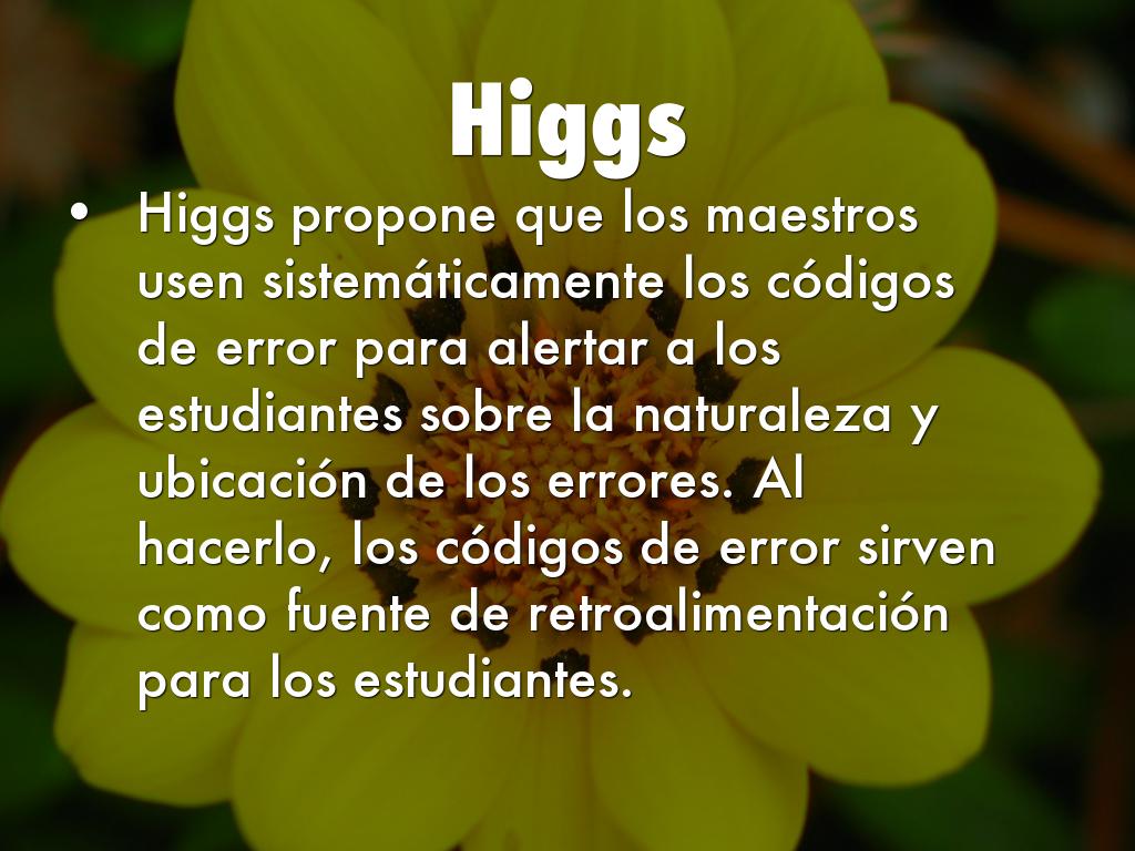 Higgs propone que los maestros usen sistemáticamente los códigos de error para alertar a los estudiantes sobre la naturaleza y ubicación de los errores. Al hacerlo, los códigos de error sirven como fuente de retroalimentación para los estudiantes.