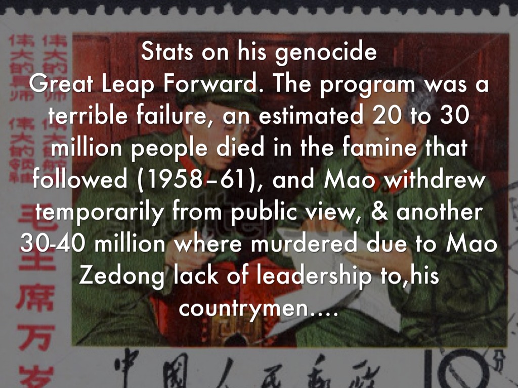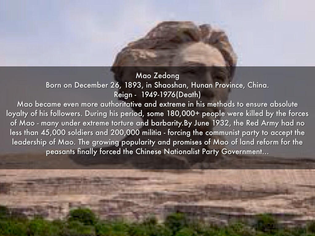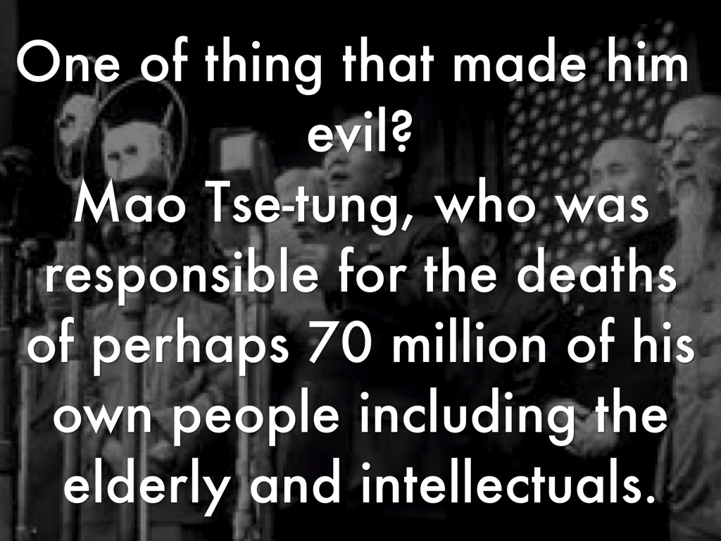Mao Zedong killed more people than Stalin & Hitler. Those who didn't want Mao Zedong in charge he had them brutally murdered and tortured.