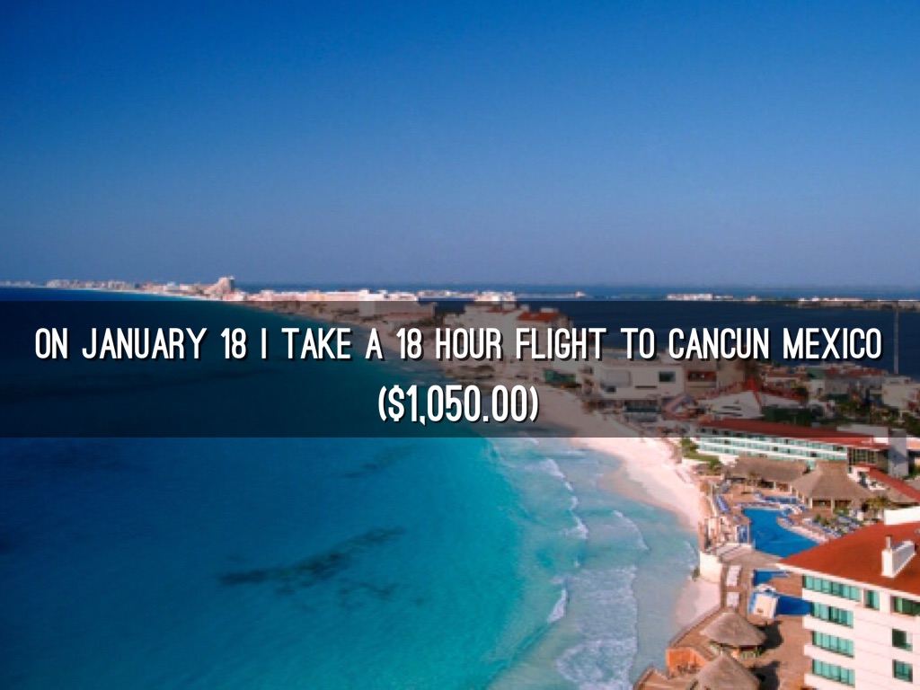ON JANUARY 18 I TAKE A 18 HOUR FLIGHT TO CANCUN MEXICO