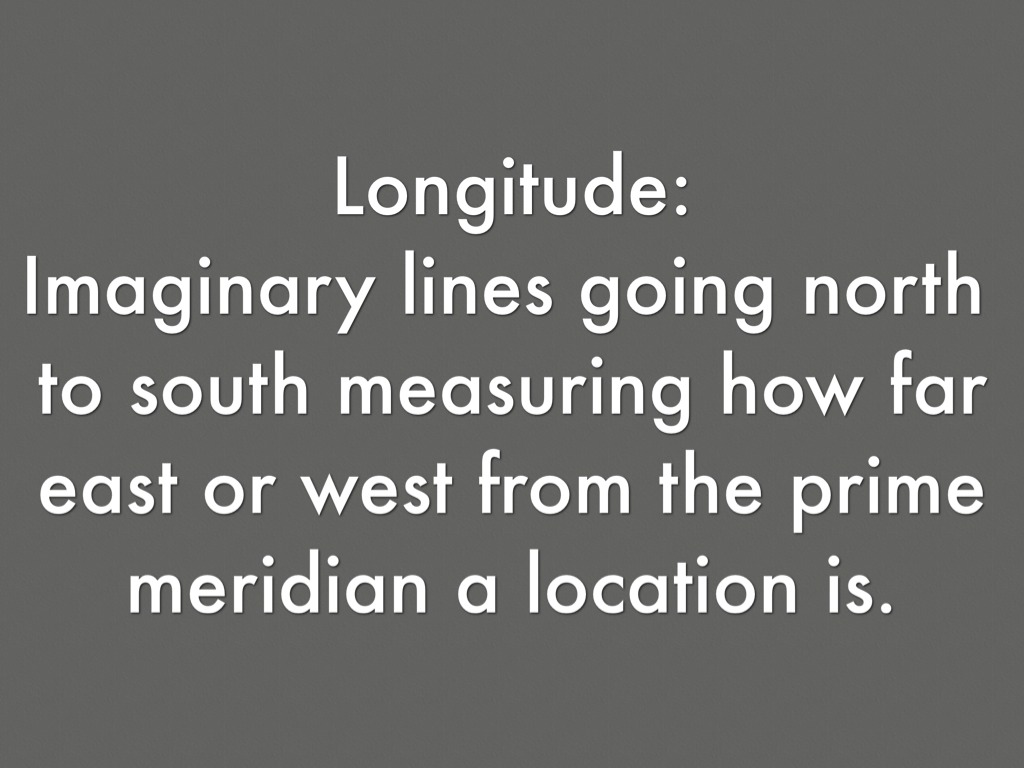 Imaginary lines going north to south measuring how far east or west from the prime meridian a location is.