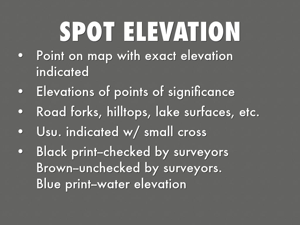 • Point on map with exact elevation indicated
