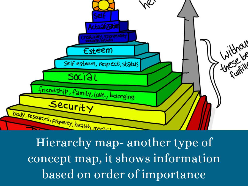 Hierarchy map- another type of concept map, it shows information based on order of importance