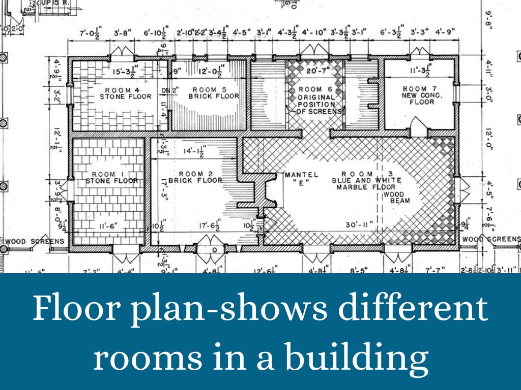 Floor plan-shows different rooms in a building