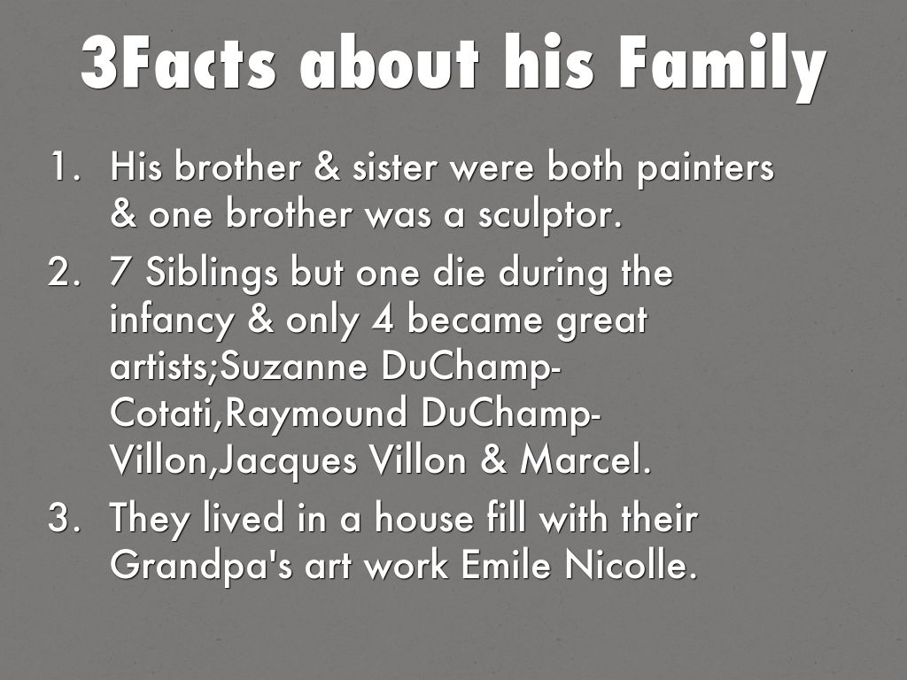 7 Siblings but one die during the infancy & only 4 became great artists;Suzanne DuChamp-Cotati,Raymound DuChamp-Villon,Jacques Villon & Marcel.