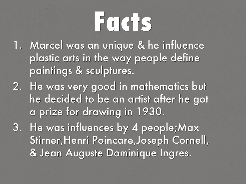 Marcel was an unique & he influence plastic arts in the way people define paintings & sculptures.