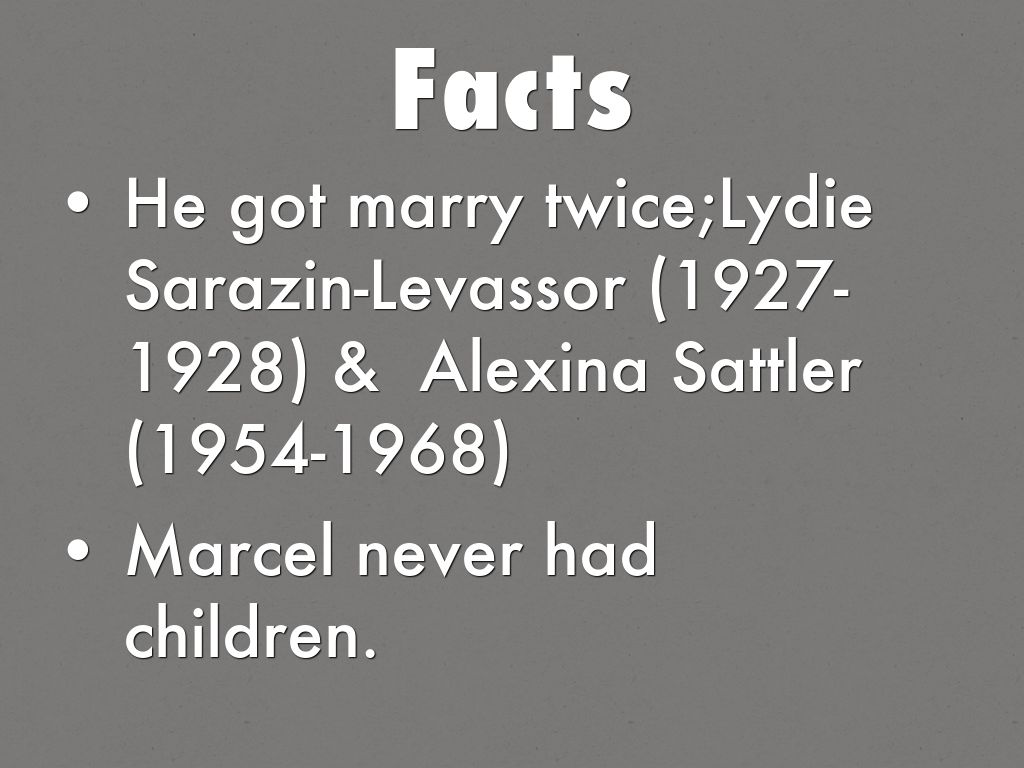 He got marry twice;Lydie Sarazin-Levassor (1927-1928) & Alexina Sattler (1954-1968)