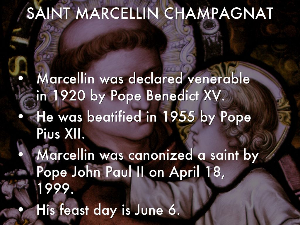 Marcellin was declared venerable in 1920 by Pope Benedict XV.