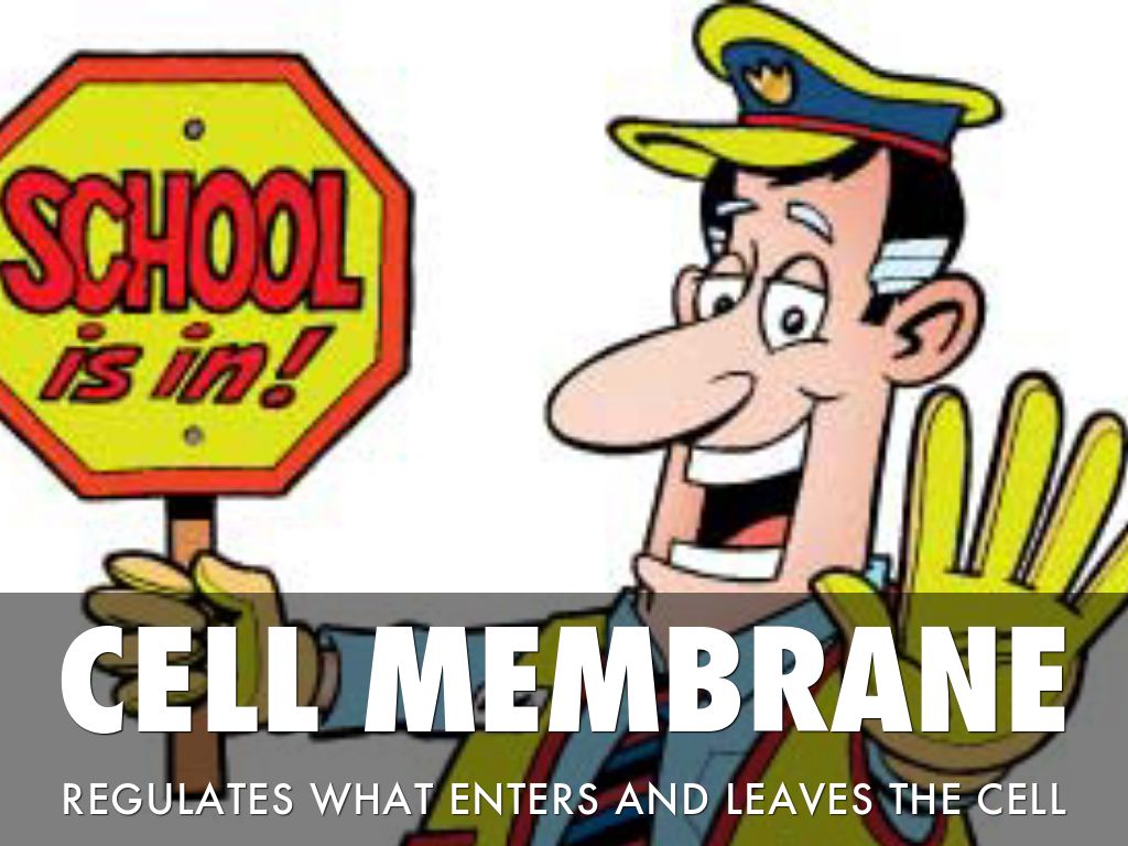 The school security guard controls what goes in and out of the school just like the cell membrane controls what goes in and out of the cell.