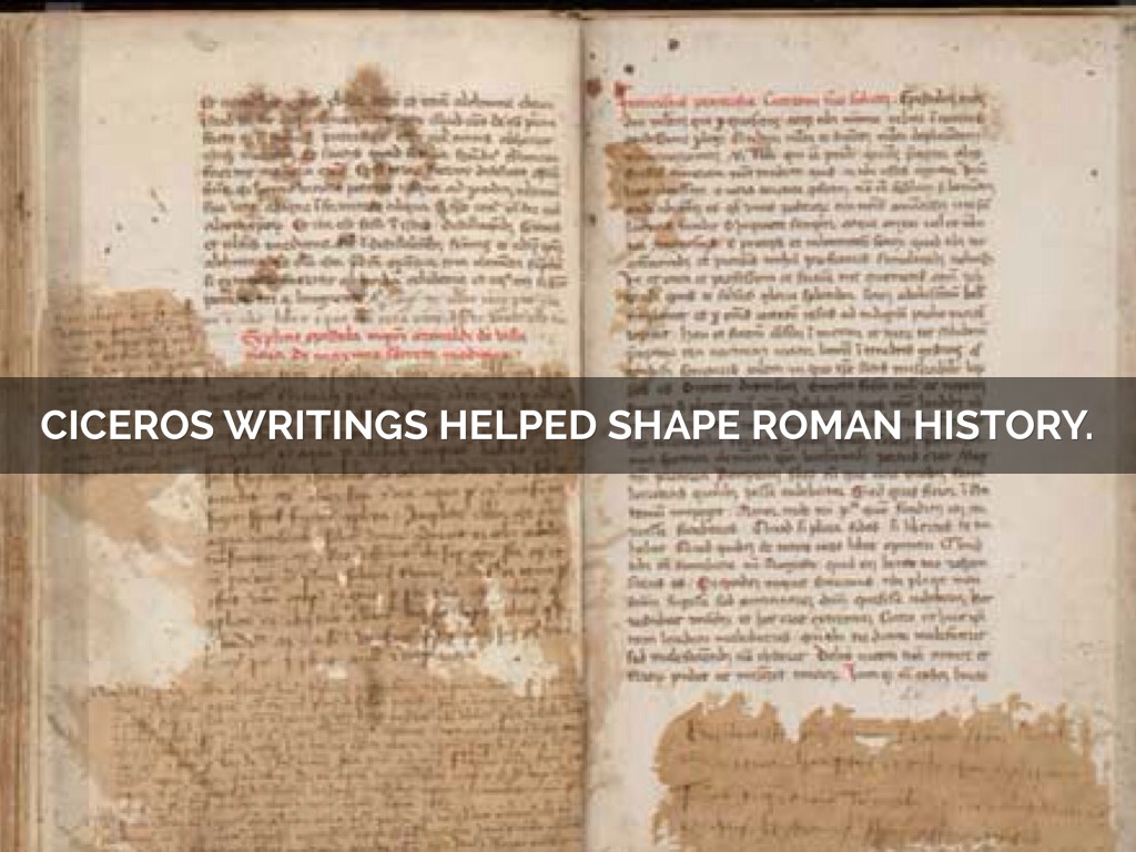 CICEROS WRITINGS HELPED SHAPE ROMAN HISTORY.