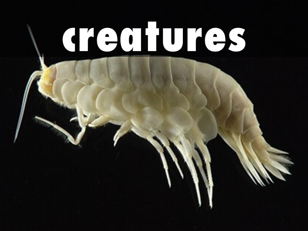 sea cucumbers, sea anemones, jelly fish, comb jellyfish, and amphipods , the ghost fish, the Dumbo octopus, the spook fish, the goblin shark,