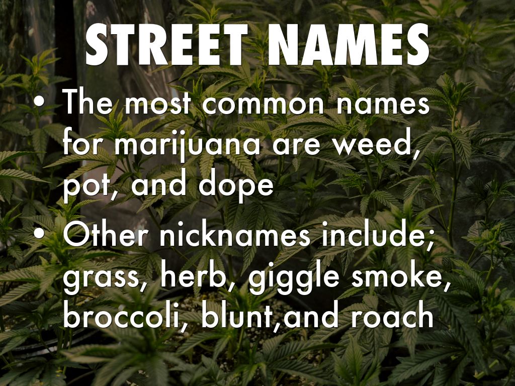 Other nicknames include; grass, herb, giggle smoke, broccoli, blunt,and roach
