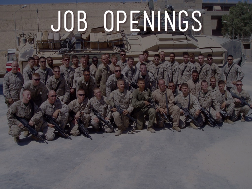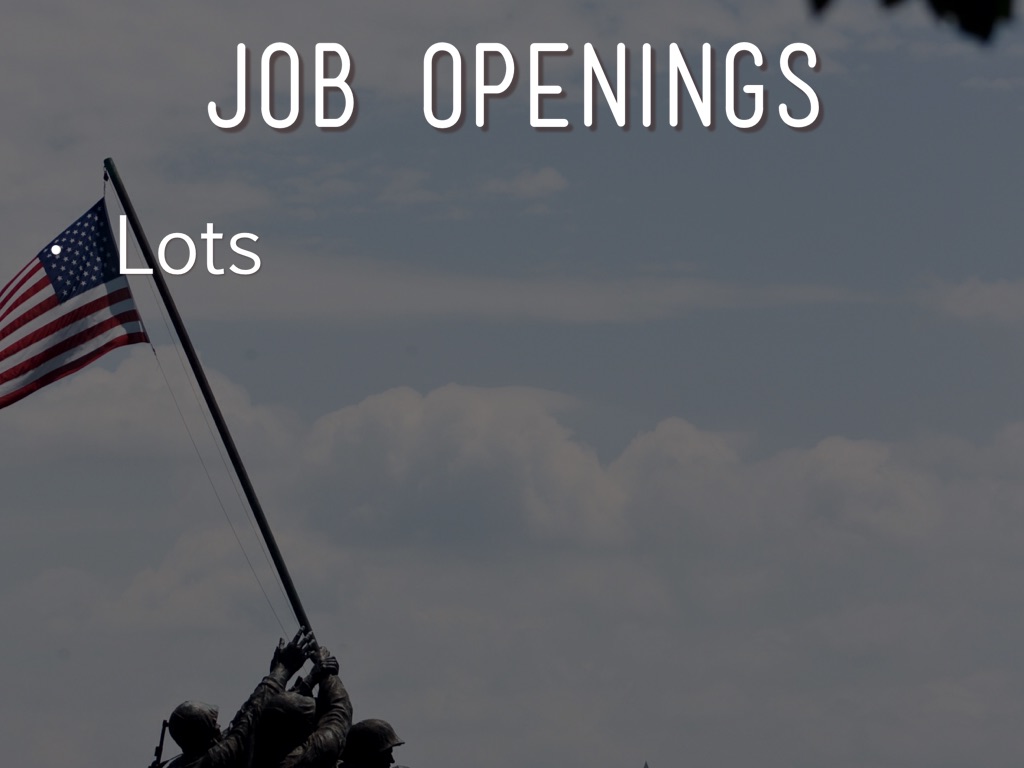Lots of job openings all thought lots of people don't make it throught the 13weeks of training