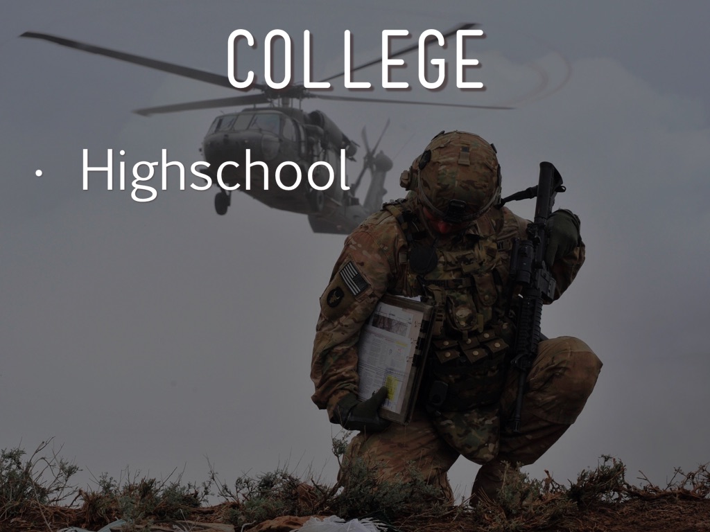 There is no needed college involved although I will go to college for sure for my career after military and you do need to finish high school. Lots of training!