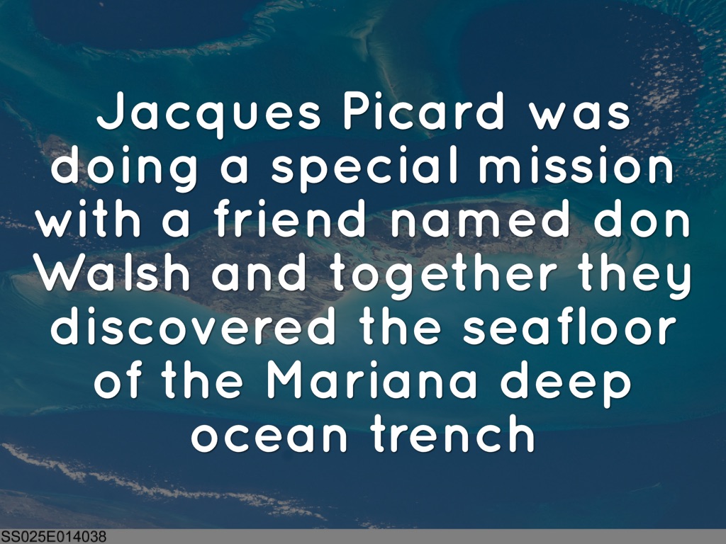 Jacques Picard was doing a special mission with a friend named don Walsh and together they discovered the seafloor of the Mariana deep ocean trench