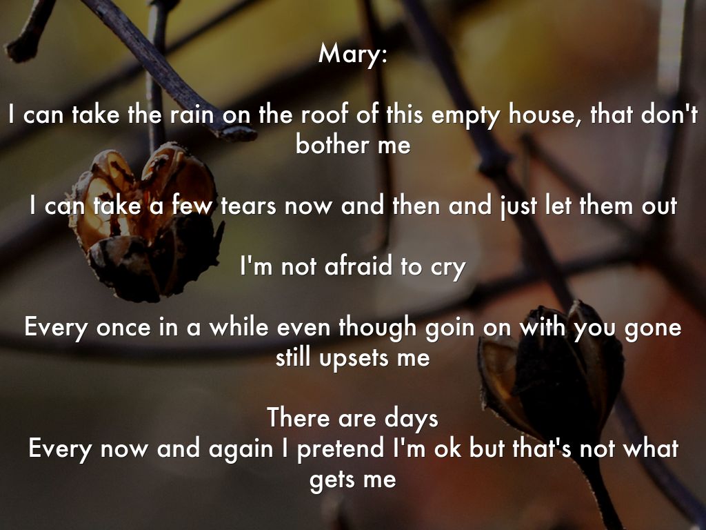 I can take the rain on the roof of this empty house, that don't bother me