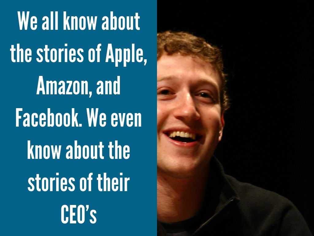 We all know about the stories of Apple, Amazon, and Facebook. We even know about the stories of their CEO’s