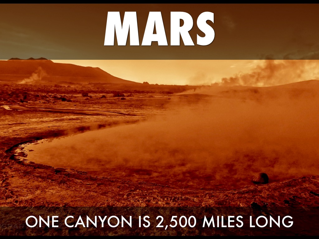 CANYONS MOUNTAINS, CRATERS, AND ROCKY PLAINS MAKE UP THE SURFACE OF MARS
