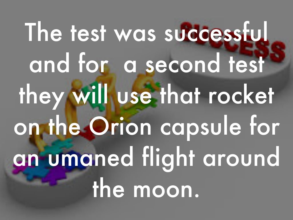 The test was successful and for a second test they will use that rocket on the Orion capsule for an umaned flight around the moon.
