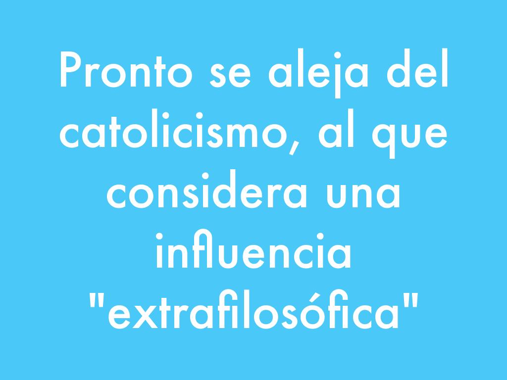 Pronto se aleja del catolicismo, al que considera una influencia "extrafilosófica"